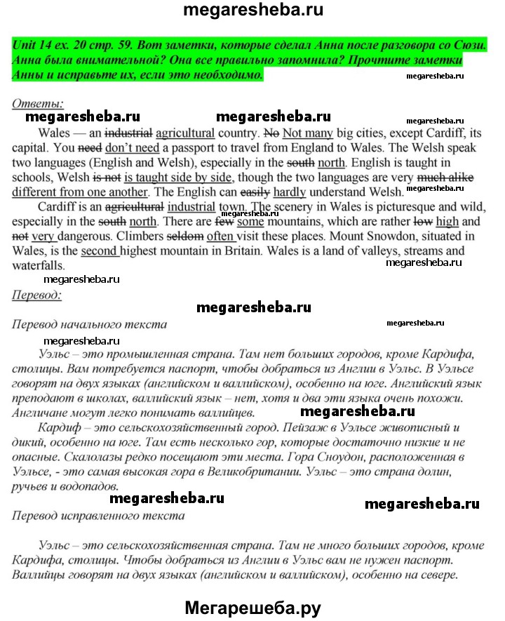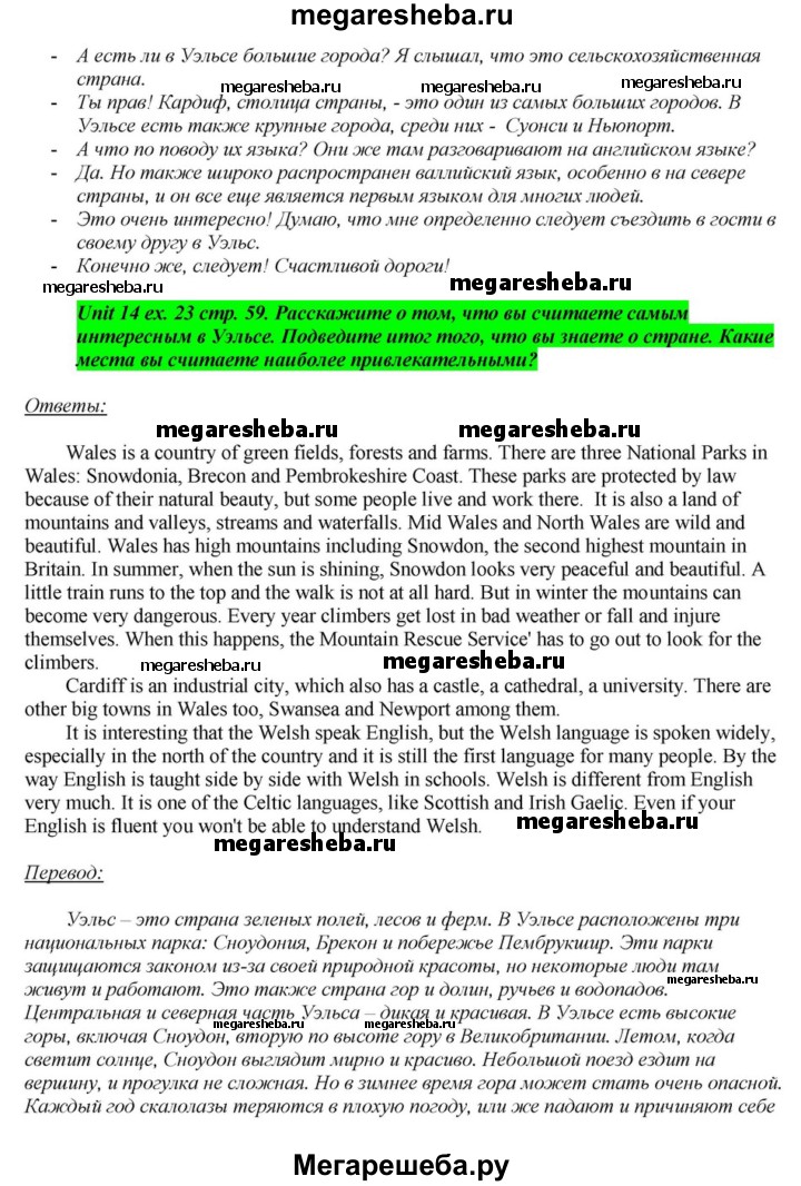 Подробный решебник (ГДЗ) по Английскому языку за 6 (шестой) класс - готовый ответ часть 2. страница - 59. Авторы учебника: Афанасьева, Михеева, Углубленный уровень. Издательство: Просвещение 2015-2023.
