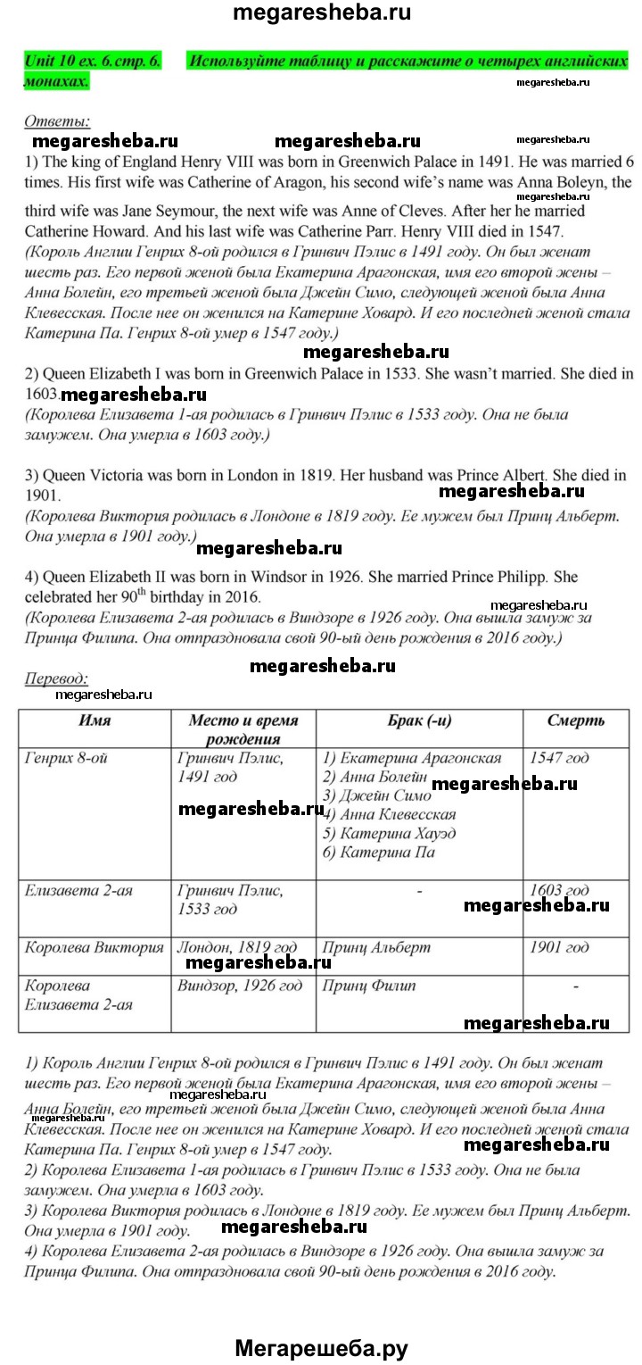 Подробный решебник (ГДЗ) по Английскому языку за 6 (шестой) класс - готовый ответ часть 2. страница - 6. Авторы учебника: Афанасьева, Михеева, Углубленный уровень. Издательство: Просвещение 2015-2023.