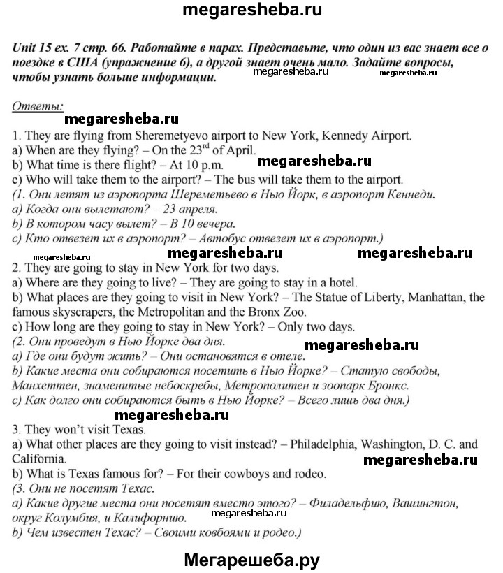 Подробный решебник (ГДЗ) по Английскому языку за 6 (шестой) класс - готовый ответ часть 2. страница - 66. Авторы учебника: Афанасьева, Михеева, Углубленный уровень. Издательство: Просвещение 2015-2023.