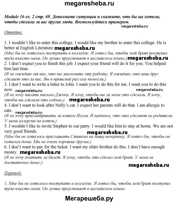 Подробный решебник (ГДЗ) по Английскому языку за 6 (шестой) класс - готовый ответ часть 2. страница - 69. Авторы учебника: Афанасьева, Михеева, Углубленный уровень. Издательство: Просвещение 2015-2023.