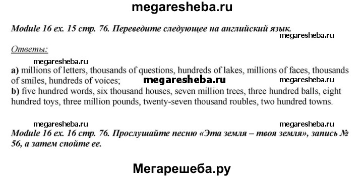 Подробный решебник (ГДЗ) по Английскому языку за 6 (шестой) класс - готовый ответ часть 2. страница - 76. Авторы учебника: Афанасьева, Михеева, Углубленный уровень. Издательство: Просвещение 2015-2023.