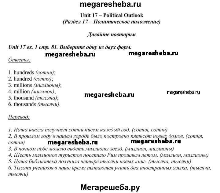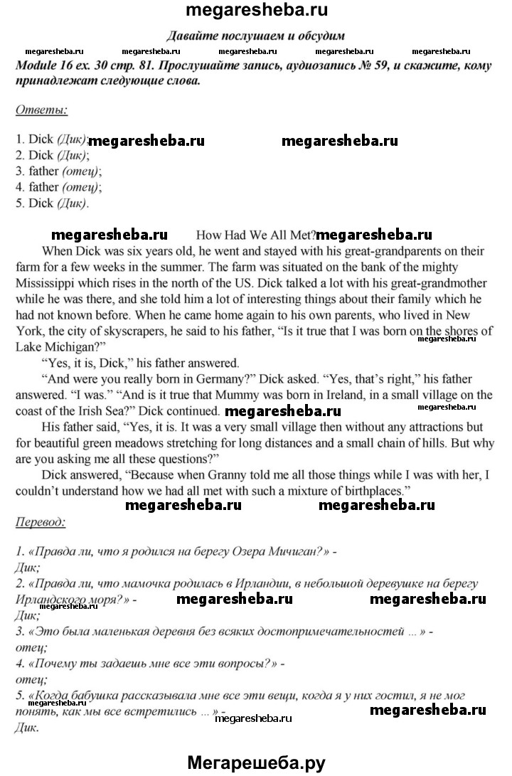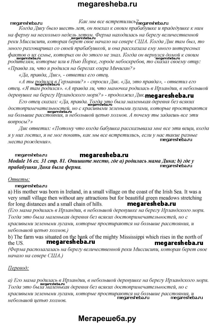 Подробный решебник (ГДЗ) по Английскому языку за 6 (шестой) класс - готовый ответ часть 2. страница - 81. Авторы учебника: Афанасьева, Михеева, Углубленный уровень. Издательство: Просвещение 2015-2023.