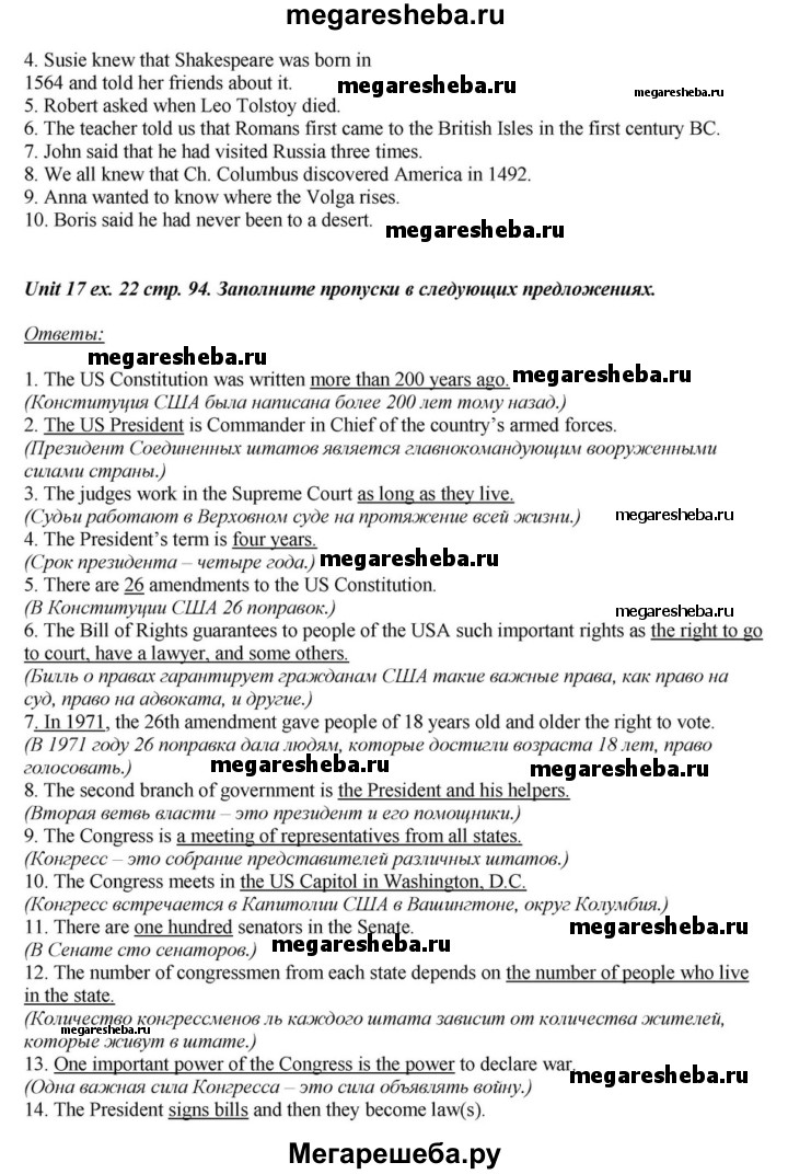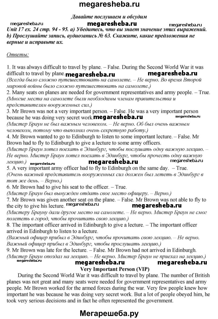 Подробный решебник (ГДЗ) по Английскому языку за 6 (шестой) класс - готовый ответ часть 2. страница - 94. Авторы учебника: Афанасьева, Михеева, Углубленный уровень. Издательство: Просвещение 2015-2023.