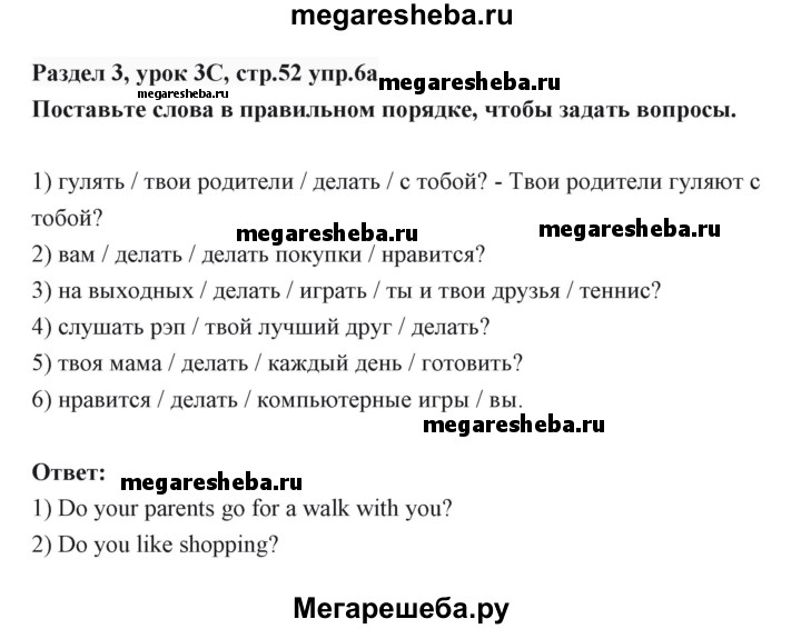 ГДЗ по английскому языку 6 класс Балута страница - 52