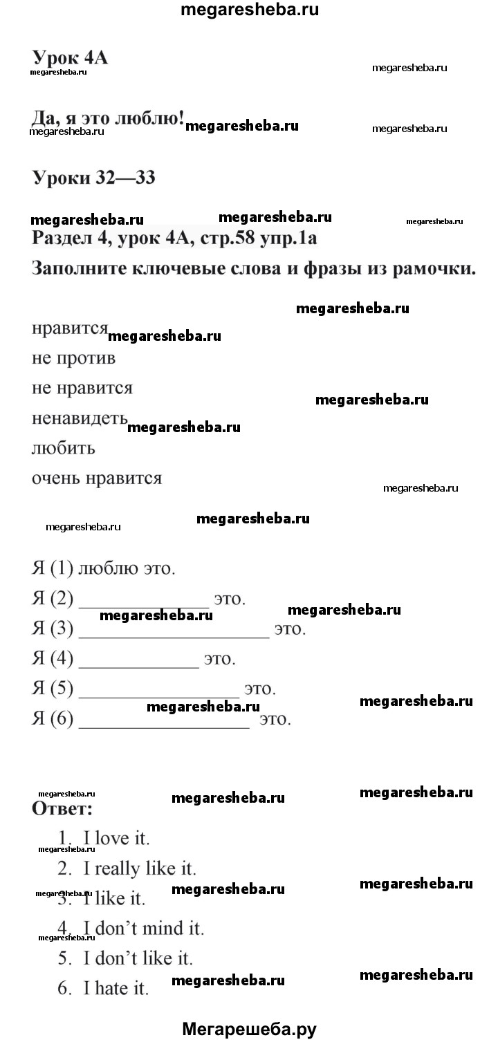 ГДЗ по английскому языку 6 класс Балута страница - 58
