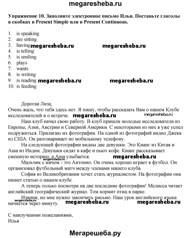 ГДЗ по английскому языку 6 класс Биболетова Enjoy English unit 1 exercise - 10