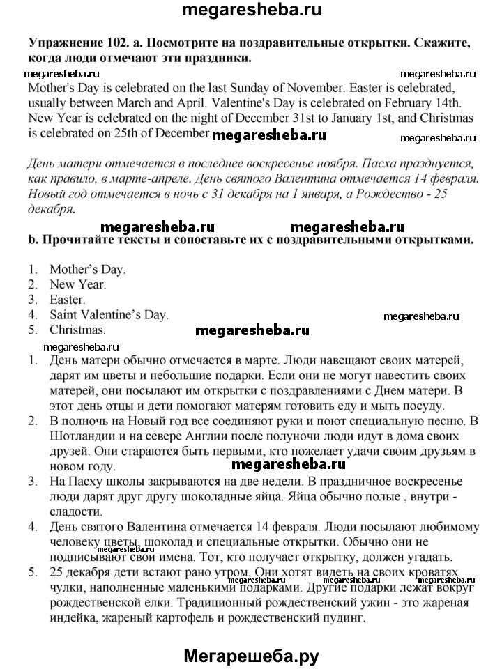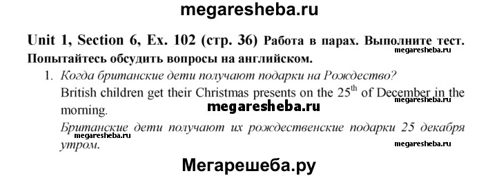 ГДЗ по английскому языку 6 класс Биболетова Enjoy English unit 1 exercise - 102