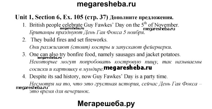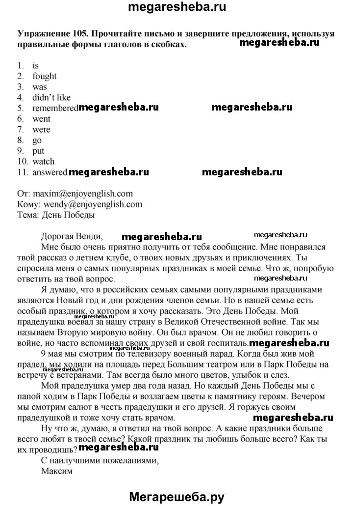 ГДЗ по английскому языку 6 класс Биболетова Enjoy English unit 1 exercise - 105