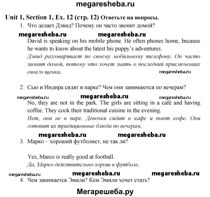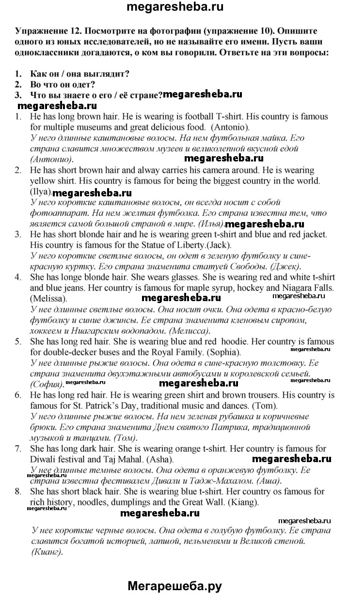 ГДЗ по английскому языку 6 класс Биболетова Enjoy English unit 1 exercise - 12