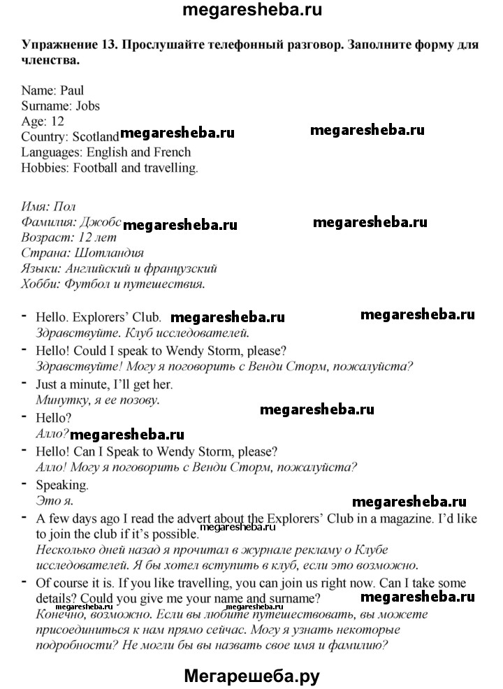 ГДЗ по английскому языку 6 класс Биболетова Enjoy English unit 1 exercise - 13