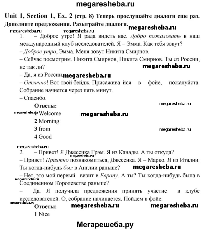 ГДЗ по английскому языку 6 класс Биболетова Enjoy English unit 1 exercise - 2