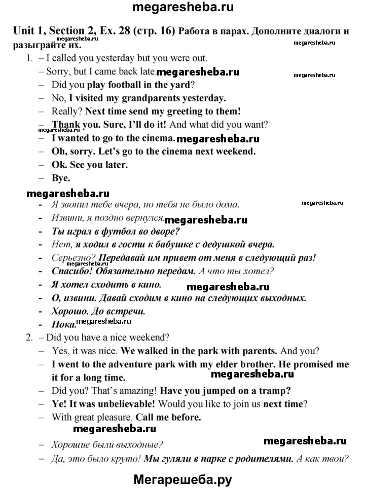 ГДЗ по английскому языку 6 класс Биболетова Enjoy English unit 1 exercise - 28