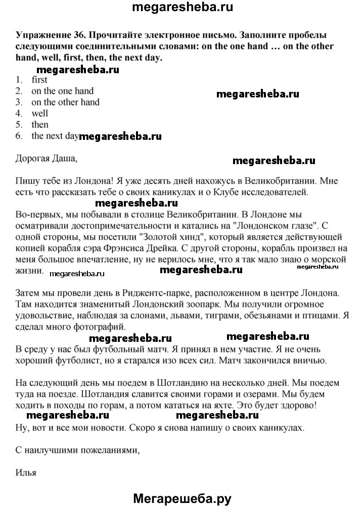 ГДЗ по английскому языку 6 класс Биболетова Enjoy English unit 1 exercise - 36