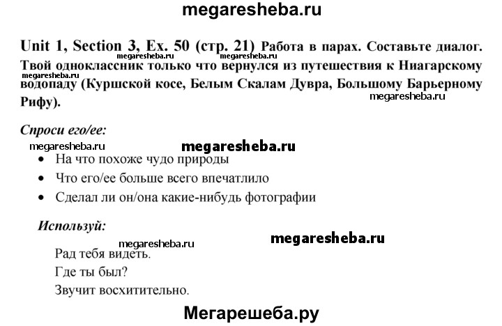 ГДЗ по английскому языку 6 класс Биболетова Enjoy English unit 1 exercise - 50