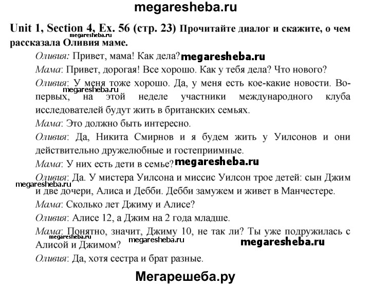 Подробный решебник (ГДЗ) по Английскому языку за 6 (шестой) класс Enjoy English - готовый ответ unit 1 exercise - 56. Авторы учебника: Биболетова, Денисенко, Трубанева. Издательство: Титул 2015-2023.