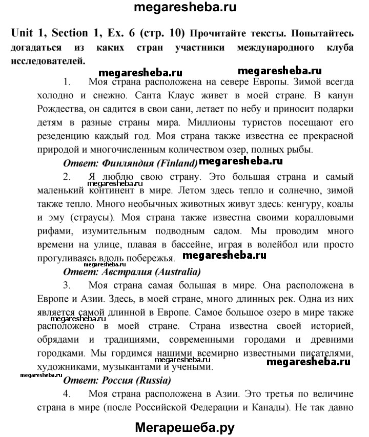 ГДЗ по английскому языку 6 класс Биболетова Enjoy English unit 1 exercise - 6