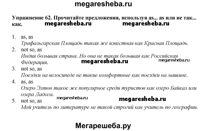 Подробный решебник (ГДЗ) по Английскому языку за 6 (шестой) класс Enjoy English - готовый ответ unit 1 exercise - 62. Авторы учебника: Биболетова, Денисенко, Трубанева. Издательство: Титул 2015-2023.