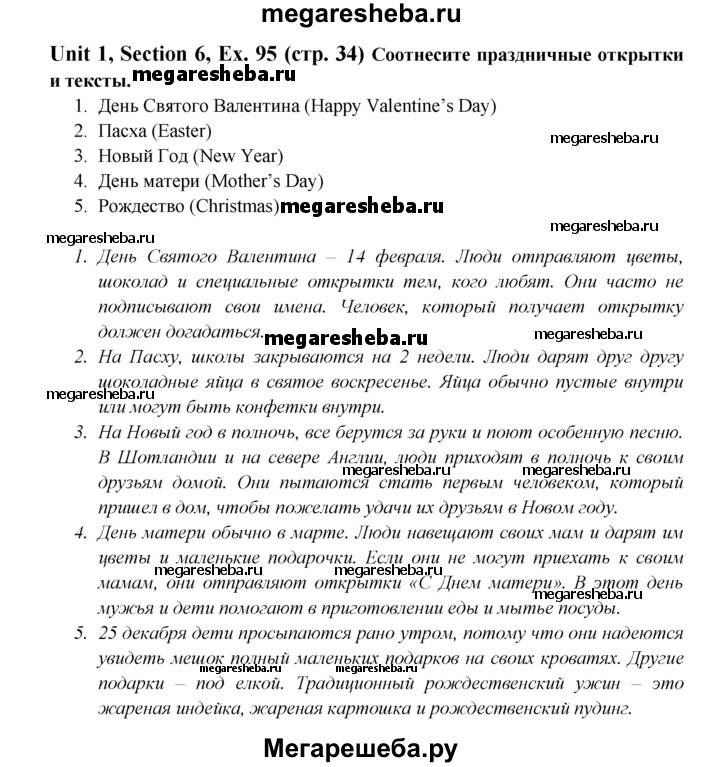 ГДЗ по английскому языку 6 класс Биболетова Enjoy English unit 1 exercise - 95