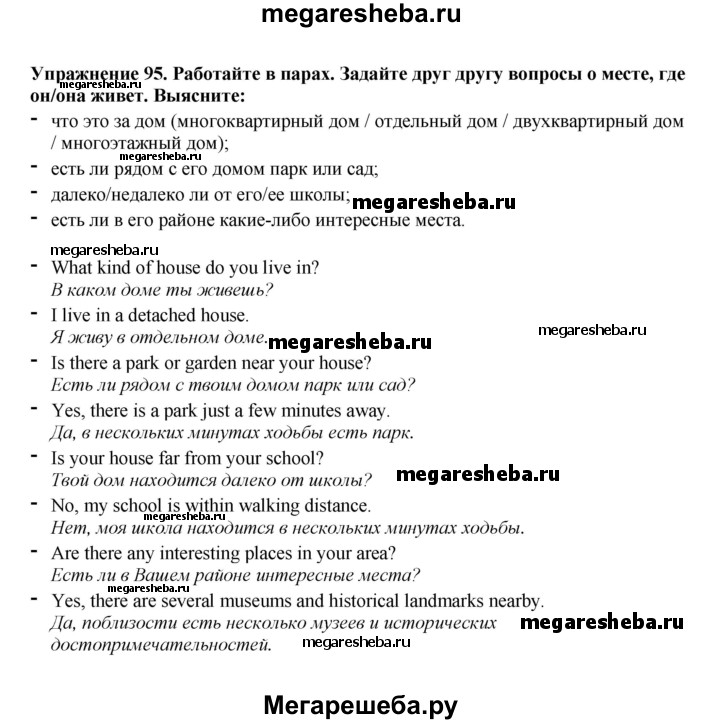 Подробный решебник (ГДЗ) по Английскому языку за 6 (шестой) класс Enjoy English - готовый ответ unit 1 exercise - 95. Авторы учебника: Биболетова, Денисенко, Трубанева. Издательство: Титул 2015-2023.