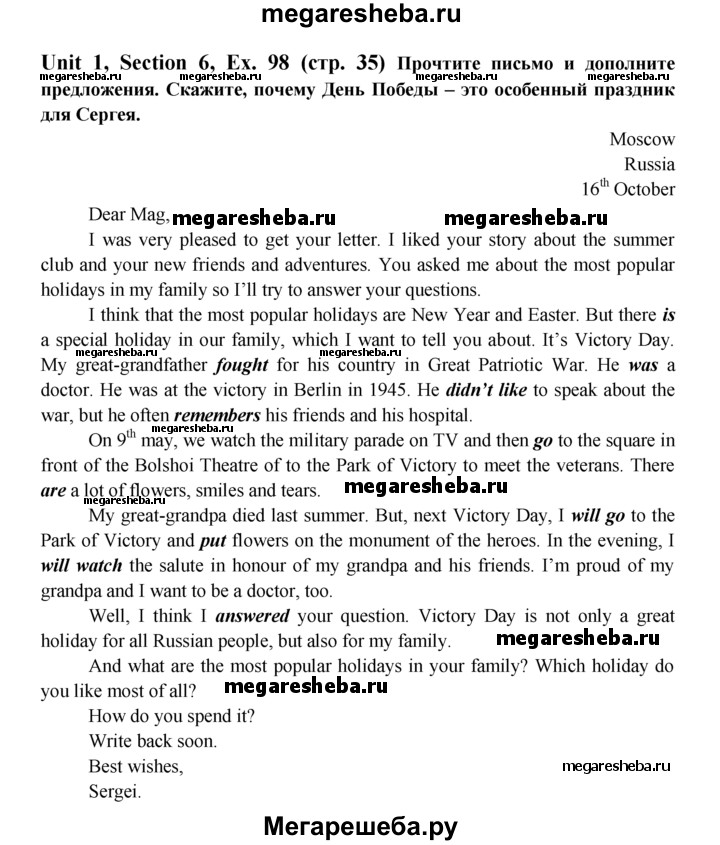 ГДЗ по английскому языку 6 класс Биболетова Enjoy English unit 1 exercise - 98