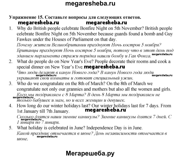 Подробный решебник (ГДЗ) по Английскому языку за 6 (шестой) класс Enjoy English - готовый ответ unit 1 homework - 15. Авторы учебника: Биболетова, Денисенко, Трубанева. Издательство: Титул 2015-2023.