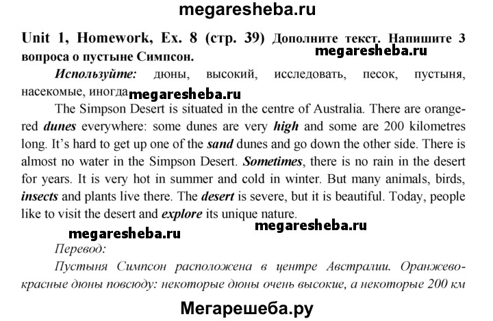 ГДЗ по английскому языку 6 класс Биболетова Enjoy English unit 1 homework - 8