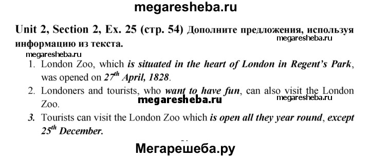 ГДЗ по английскому языку 6 класс Биболетова Enjoy English unit 2 exercise - 25