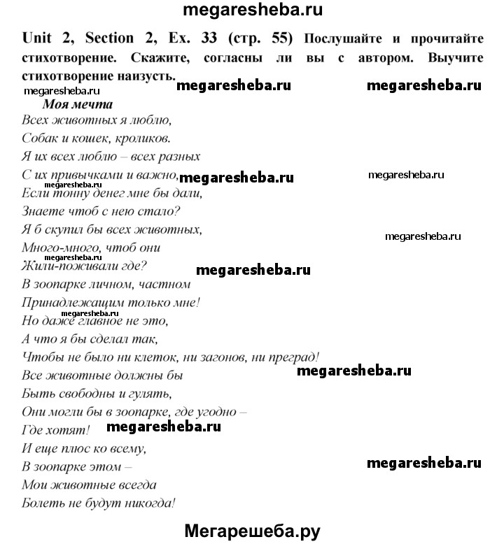 ГДЗ по английскому языку 6 класс Биболетова Enjoy English unit 2 exercise - 33