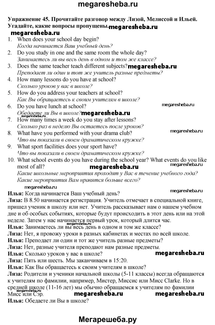 ГДЗ по английскому языку 6 класс Биболетова Enjoy English unit 2 exercise - 45