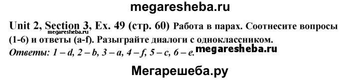Подробный решебник (ГДЗ) по Английскому языку за 6 (шестой) класс Enjoy English - готовый ответ unit 2 exercise - 49. Авторы учебника: Биболетова, Денисенко, Трубанева. Издательство: Титул 2015-2023.