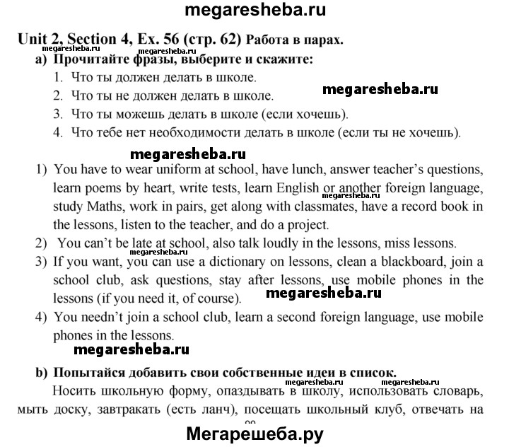 Подробный решебник (ГДЗ) по Английскому языку за 6 (шестой) класс Enjoy English - готовый ответ unit 2 exercise - 56. Авторы учебника: Биболетова, Денисенко, Трубанева. Издательство: Титул 2015-2023.