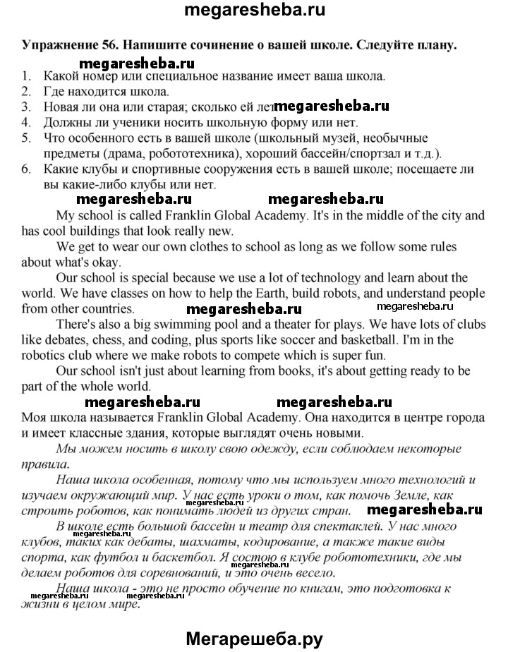 ГДЗ по английскому языку 6 класс Биболетова Enjoy English unit 2 exercise - 56