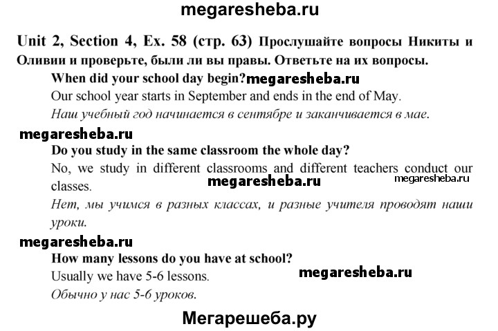 ГДЗ по английскому языку 6 класс Биболетова Enjoy English unit 2 exercise - 58