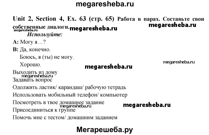 Подробный решебник (ГДЗ) по Английскому языку за 6 (шестой) класс Enjoy English - готовый ответ unit 2 exercise - 63. Авторы учебника: Биболетова, Денисенко, Трубанева. Издательство: Титул 2015-2023.