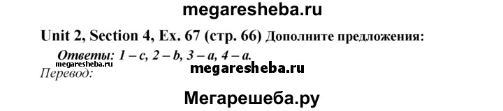 Подробный решебник (ГДЗ) по Английскому языку за 6 (шестой) класс Enjoy English - готовый ответ unit 2 exercise - 67. Авторы учебника: Биболетова, Денисенко, Трубанева. Издательство: Титул 2015-2023.