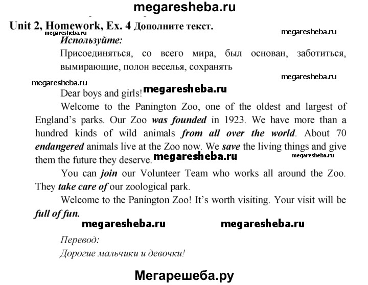 ГДЗ по английскому языку 6 класс Биболетова Enjoy English unit 2 homework - 4