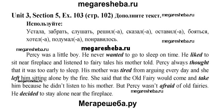 Подробный решебник (ГДЗ) по Английскому языку за 6 (шестой) класс Enjoy English - готовый ответ unit 3 exercise - 103. Авторы учебника: Биболетова, Денисенко, Трубанева. Издательство: Титул 2015-2023.