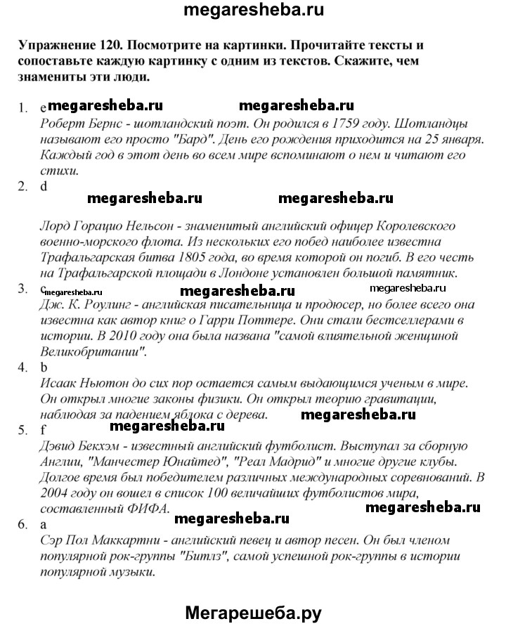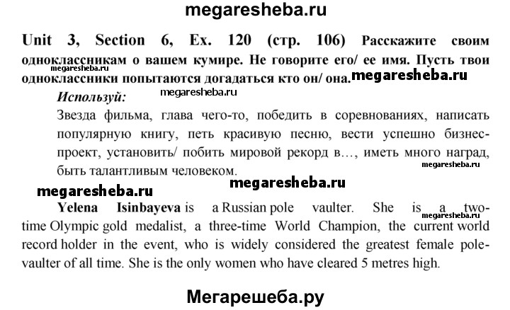 ГДЗ по английскому языку 6 класс Биболетова Enjoy English unit 3 exercise - 120