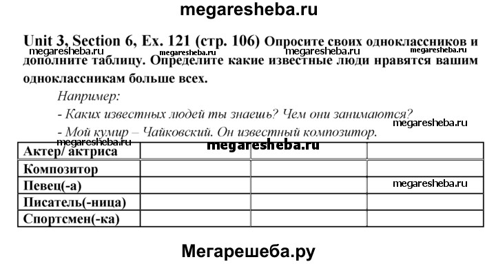 ГДЗ по английскому языку 6 класс Биболетова Enjoy English unit 3 exercise - 121