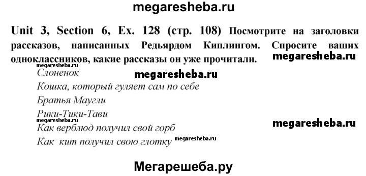Подробный решебник (ГДЗ) по Английскому языку за 6 (шестой) класс Enjoy English - готовый ответ unit 3 exercise - 128. Авторы учебника: Биболетова, Денисенко, Трубанева. Издательство: Титул 2015-2023.