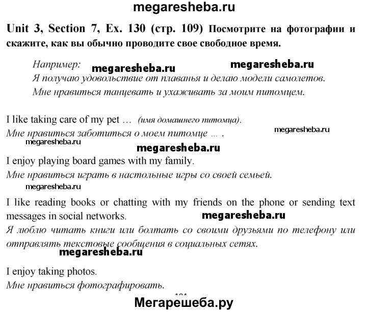 Подробный решебник (ГДЗ) по Английскому языку за 6 (шестой) класс Enjoy English - готовый ответ unit 3 exercise - 130. Авторы учебника: Биболетова, Денисенко, Трубанева. Издательство: Титул 2015-2023.