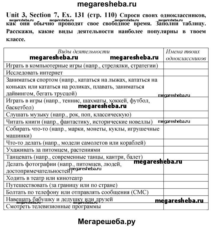 ГДЗ по английскому языку 6 класс Биболетова Enjoy English unit 3 exercise - 131