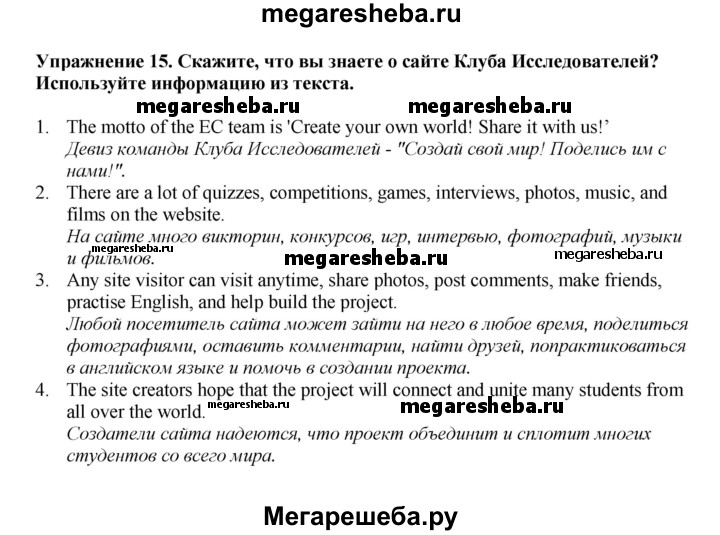 ГДЗ по английскому языку 6 класс Биболетова Enjoy English unit 3 exercise - 15