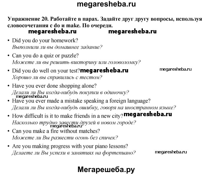 ГДЗ по английскому языку 6 класс Биболетова Enjoy English unit 3 exercise - 20