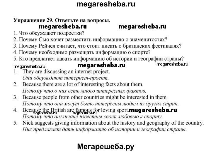 ГДЗ по английскому языку 6 класс Биболетова Enjoy English unit 3 exercise - 29