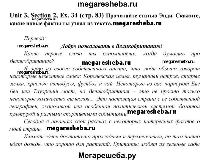 ГДЗ по английскому языку 6 класс Биболетова Enjoy English unit 3 exercise - 34