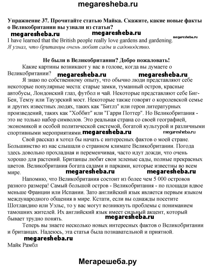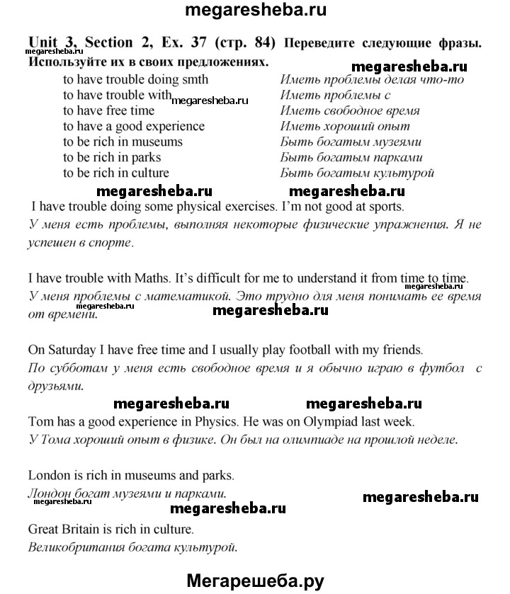 ГДЗ по английскому языку 6 класс Биболетова Enjoy English unit 3 exercise - 37
