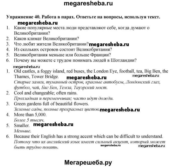ГДЗ по английскому языку 6 класс Биболетова Enjoy English unit 3 exercise - 40