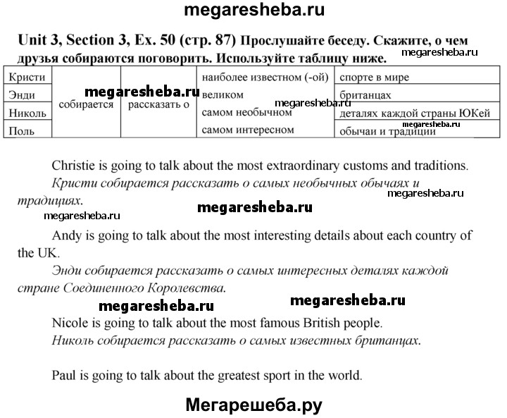 ГДЗ по английскому языку 6 класс Биболетова Enjoy English unit 3 exercise - 50