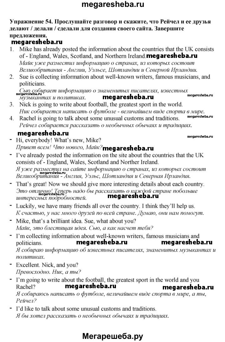 ГДЗ по английскому языку 6 класс Биболетова Enjoy English unit 3 exercise - 54